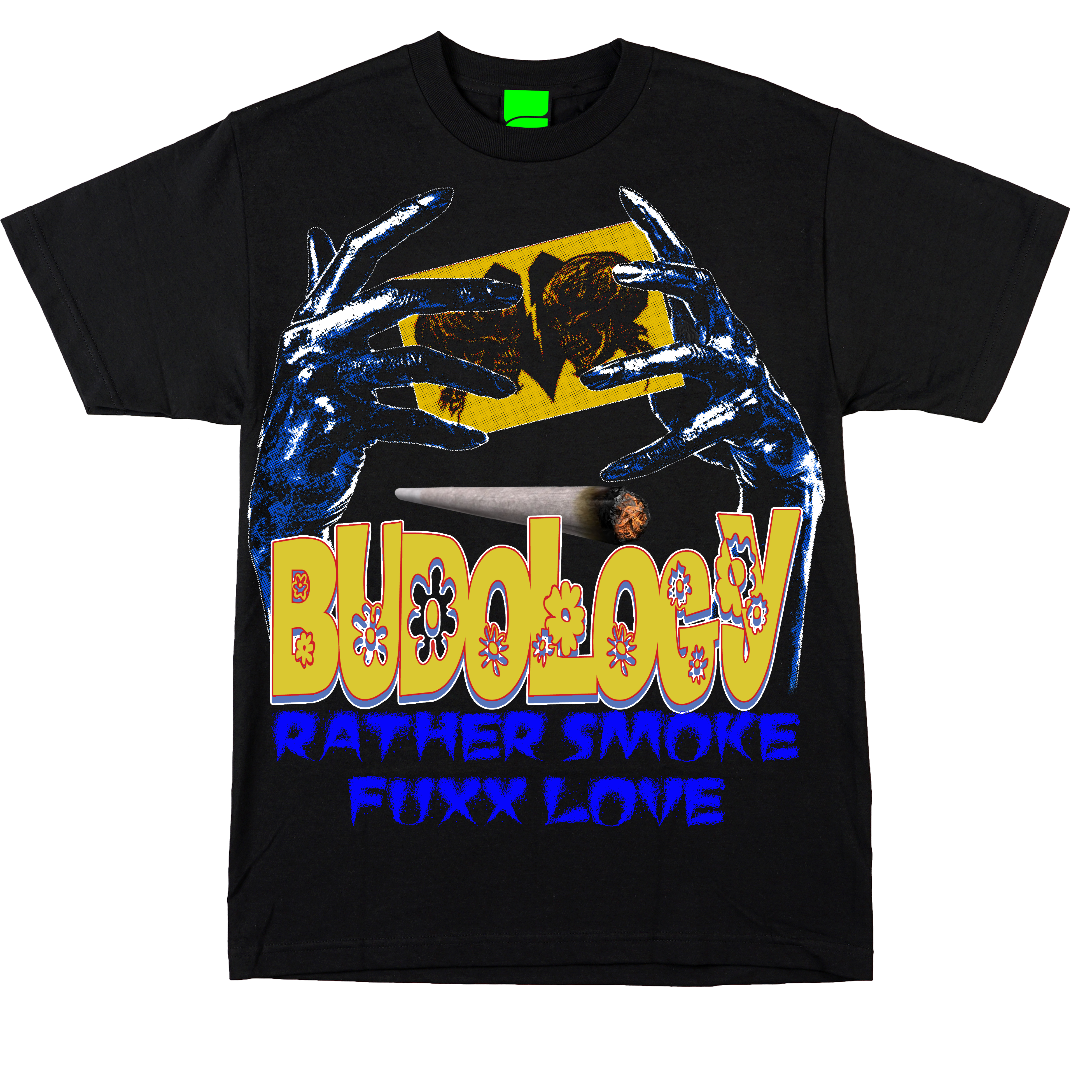 Rather Smoke Than Love is Budologyโs unapologetic break-up anthem in fabric form. Two hands hold up a playing card torn in half, revealing twin skulls and a broken heart right down the middle. Because why cry over someone who ghosted youโฆ