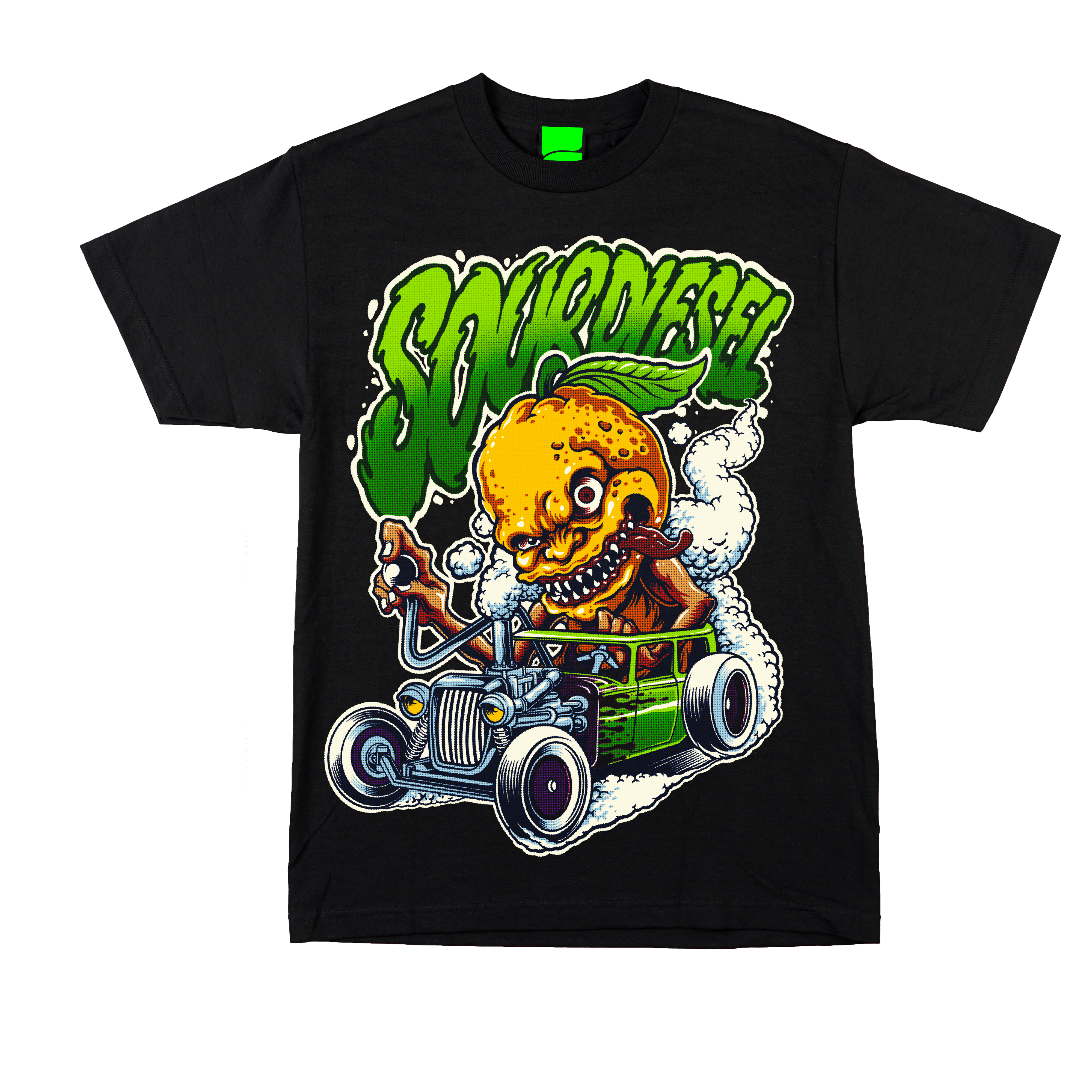 🍋🚗💨 Product Title: Sour Diesel – Mad Lemon Rat Rod Tee